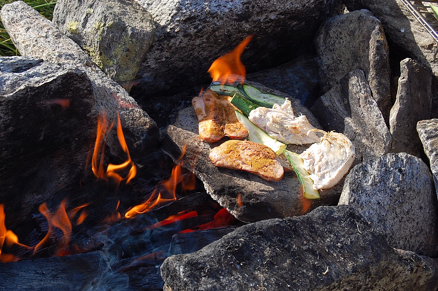 Dengan menggunakan tumpukan batu-batu gunung yang ada disekitar danau, maka dapur alla Mr. Flinstone pun mulai dibuat, dan acara tiup-tiup api pun kuhembuskan agar kayu-kayu yang sudah kami persiapkan dari rumah, segera terbakar habis.