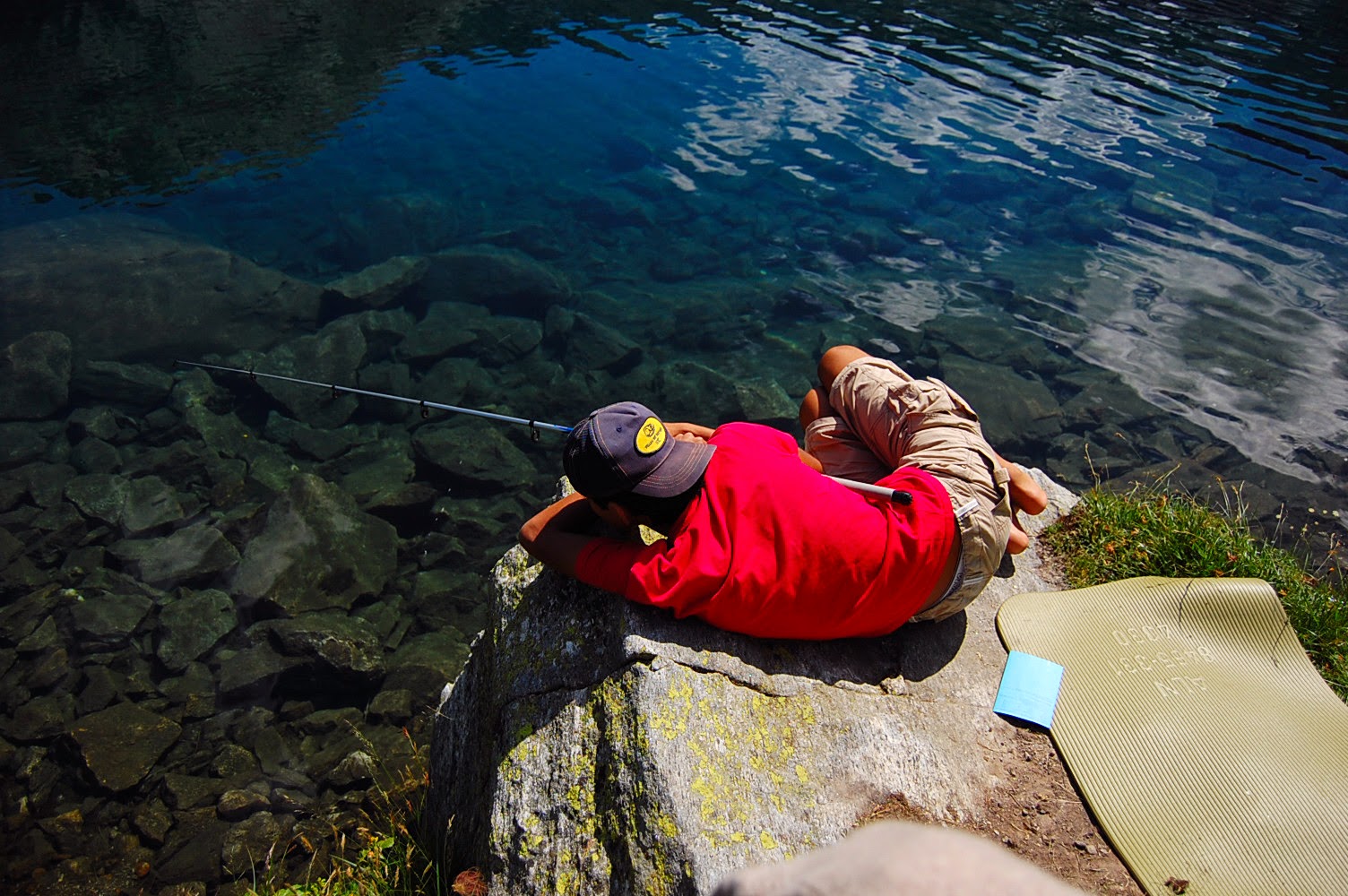 Puas dengan klak klik kamera serta cuci mata, Matt, anak lelaki saya, mulai melakukan pemanasan dengan memancing di danau Narèt. Namun tak lama kemudian, para pemancing lainnya mulai berdatangan, dan akhirnya danau ini menjadi penuh dengan pemancing yang berlomba mencari sekail ikan. Sesuai dengan tujuan awal, bersembunyi di dalam alam bebas, maka kami pun kabur, mencari lokasi strategis untuk mendirikan tenda jauh dari kerumunan orang banyak.