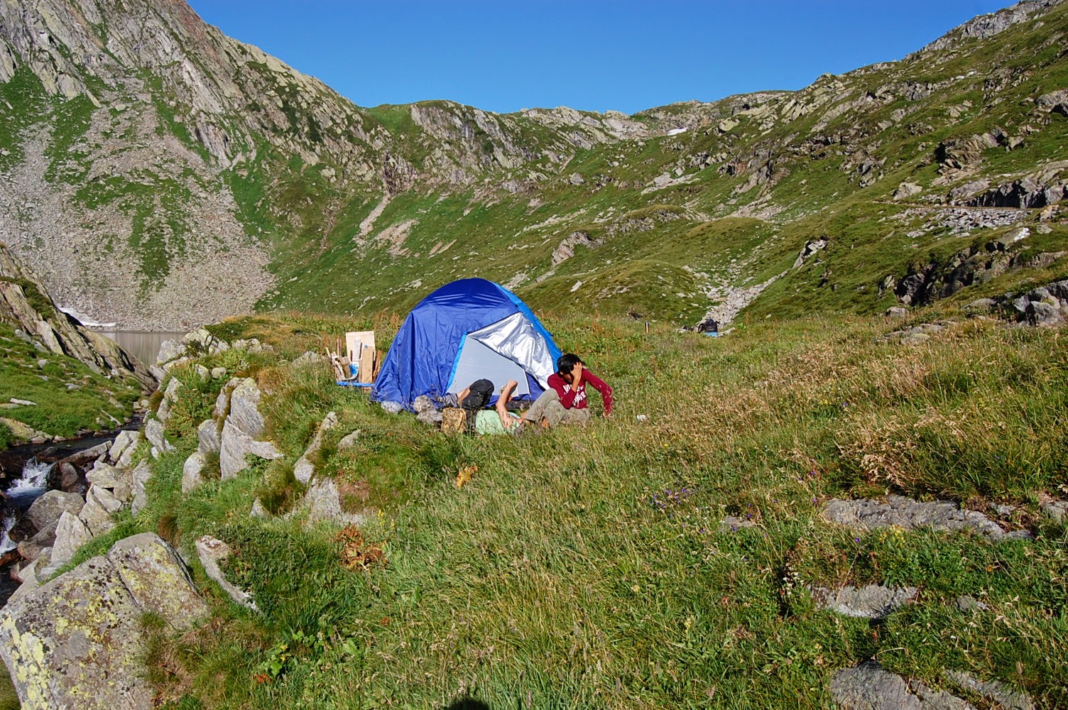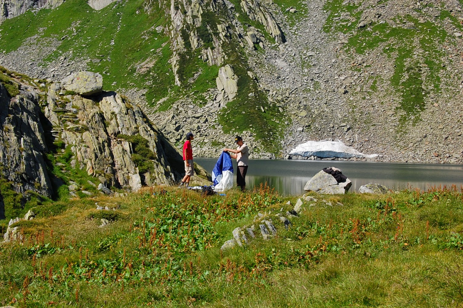 Lembah Sambuco yang diperkaya dengan danau-danau, memberikan banyak pilihan untuk bersembunyi dari keramaian, kamipun turun beberapa meter dari puncak gunung dan memilih berhenti di ketinggian 2128 m, dan menetapkan danau Superiore (“Lag da sura”) sebagai pilihan yang tepat. Memiliki dataran yang lumayan berumput, dekat dengan sungai kecil yang menghubungkan antara danau Superiore (“Lag da sura”) dan danau Sassolo (“Lag bass”), sebagai rumah sementara selama beberapa hari.